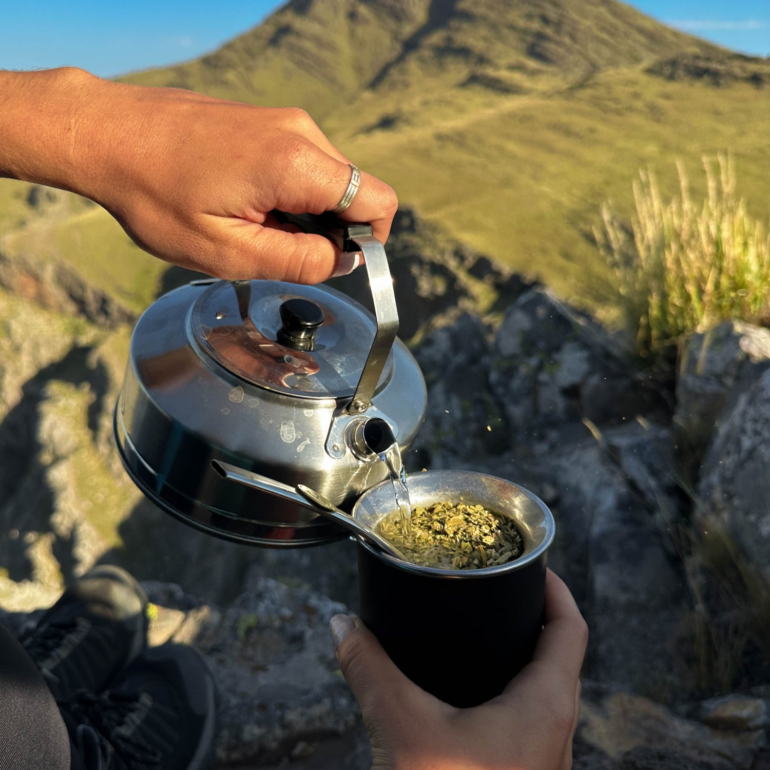 Pour préparer le maté, remplissez une calebasse à moitié avec des feuilles de maté séchées. Inclinez légèrement la calebasse et insérez une bombilla (une paille filtrante en métal). Versez ensuite un peu d'eau froide pour humidifier les feuilles, puis ajoutez lentement de l'eau chaude (mais pas bouillante, environ 70-80°C) jusqu'à remplir la calebasse. Laissez infuser quelques minutes, puis buvez à travers la bombilla. Vous pouvez ajouter de l'eau chaude plusieurs fois sur les mêmes feuilles pour continuer à déguster